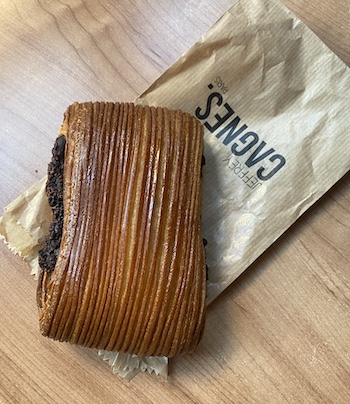 クロワッサン生地にカスタードに、チョコです。