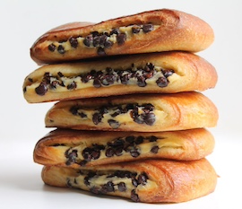 ブリオッシュ生地にカスタードクリームをはさみ、チョコチップです。